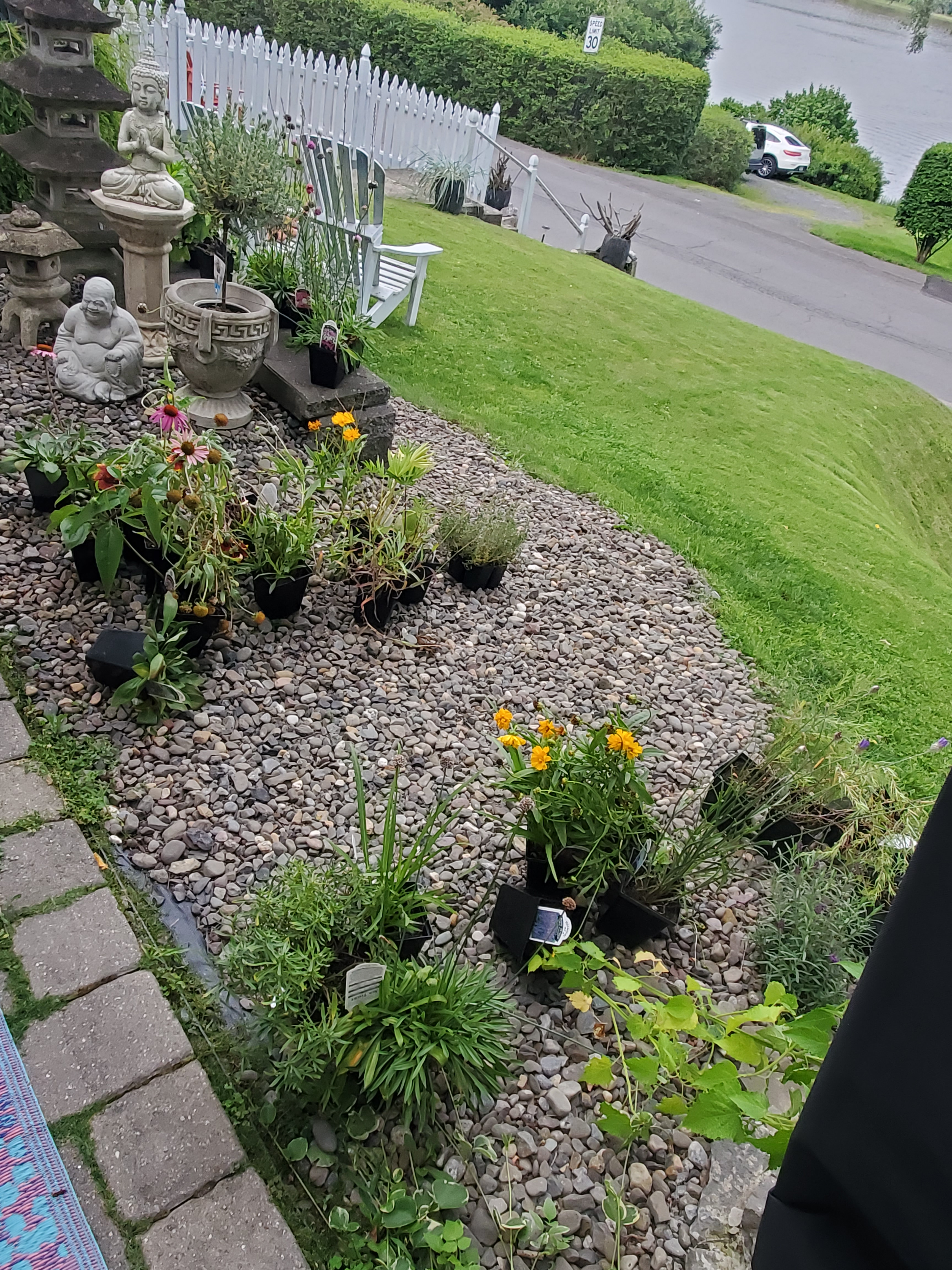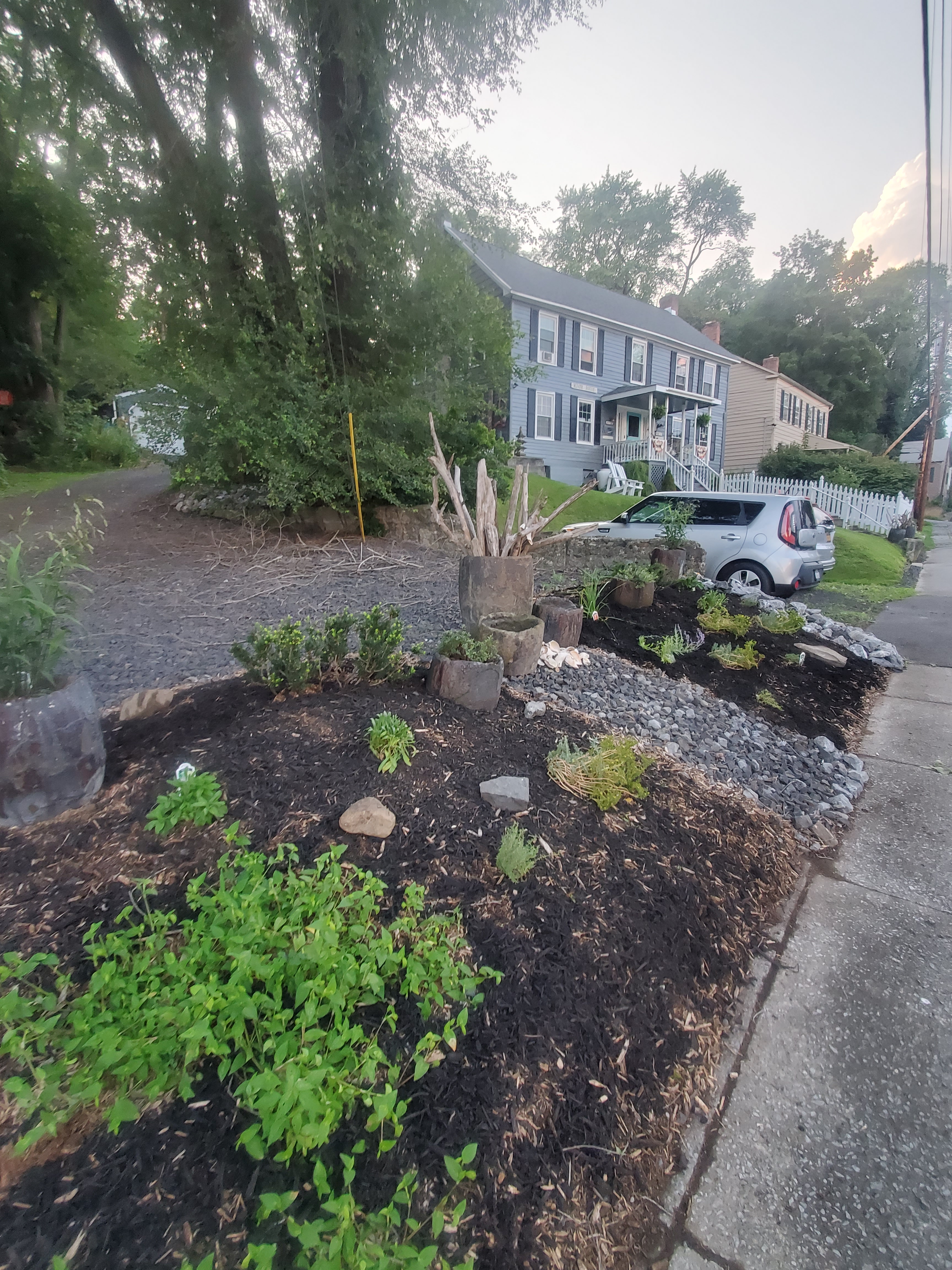 Trying to think of COVID friendly, fun, meditative, and healthy activity, look no further than creating your own Instant Garden. In just under 5 hours, our team (Rick, Emily, and myself), turned our drab front yard into a country oasis breeding new life to the front of our 1800s Hudson River home. Stemming from our COVID isolation we have made some welcomed improvements to our yard, thanks to phenomenal British garden shows on BritBox, various planting guides and magazines, and our passion and talent with landscaping and gardening. Using techniques from the Instant Gardner with Danny Clarke (our favorite garden show on BritBox) we brought our front yard back to life using clever design, imagination, recycled materials, and over 70 perennials. Check out the Before and After pictures of our front yard renovations (both the country garden the ocean inspired garden), plus a few pictures of the buying process!