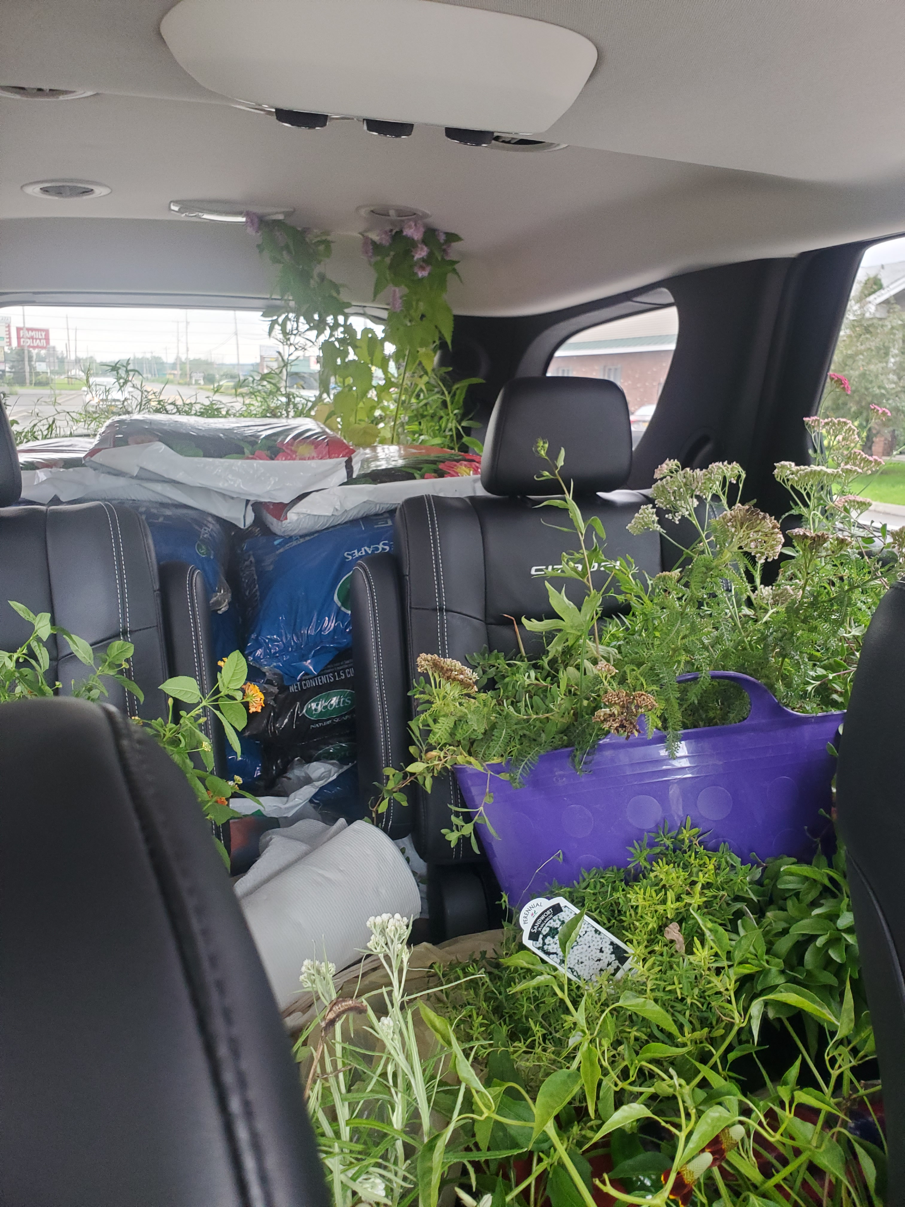Pro-tip: When buying plants, make use of trugs (the purple and orange plastic containers). They make transporting plants simple and result in limited clean-up.