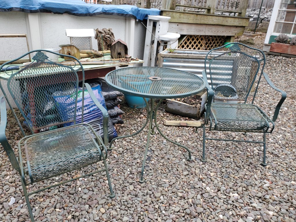 After pricing out outdoor bistro sets, we became discouraged at the high prices. So, we went looking for a vintage bistro set for the garden area. Not only did we find a bistro set for a great price but we found lots of finds for our booth at the Coxsackie Antique Center.