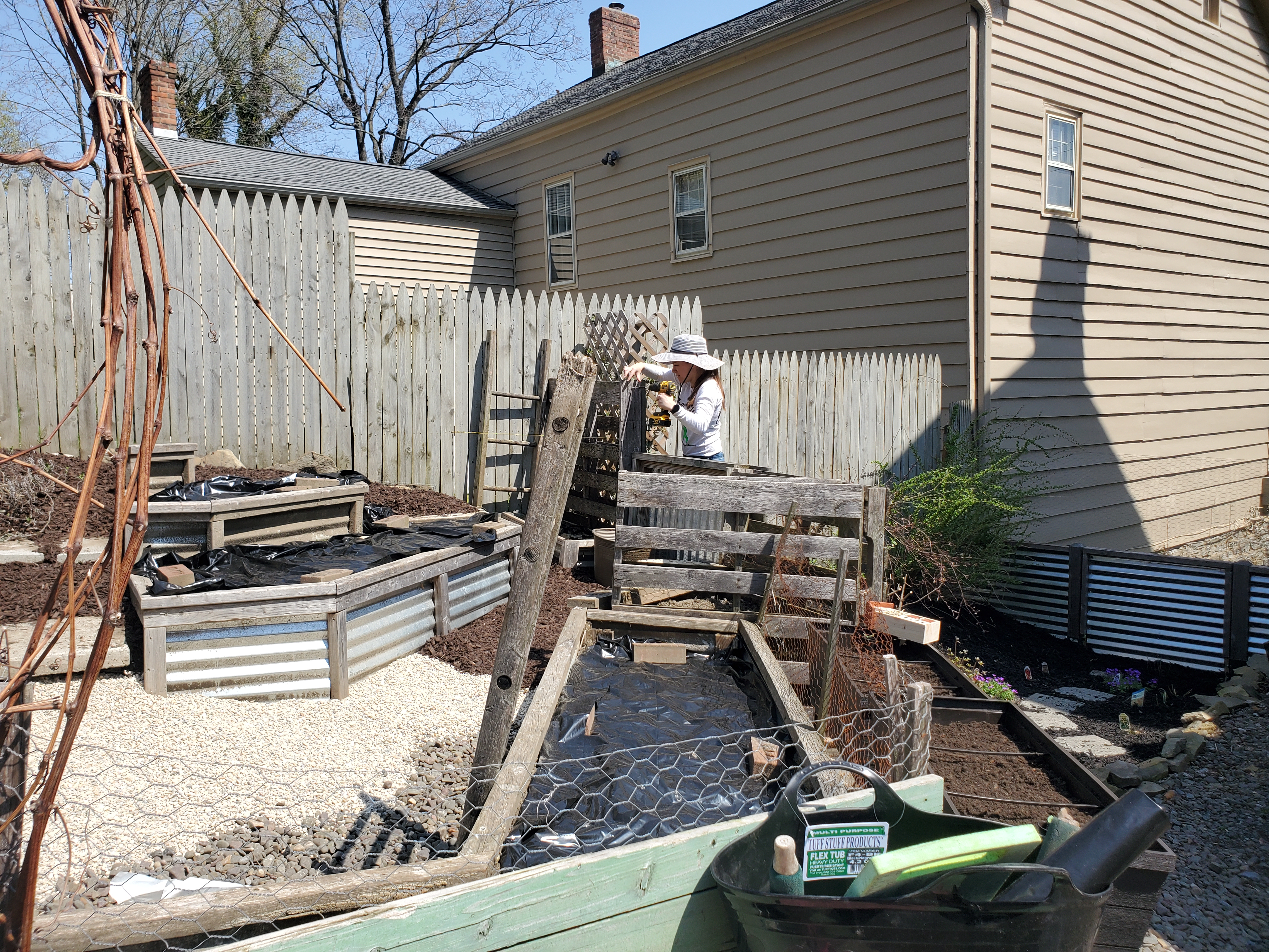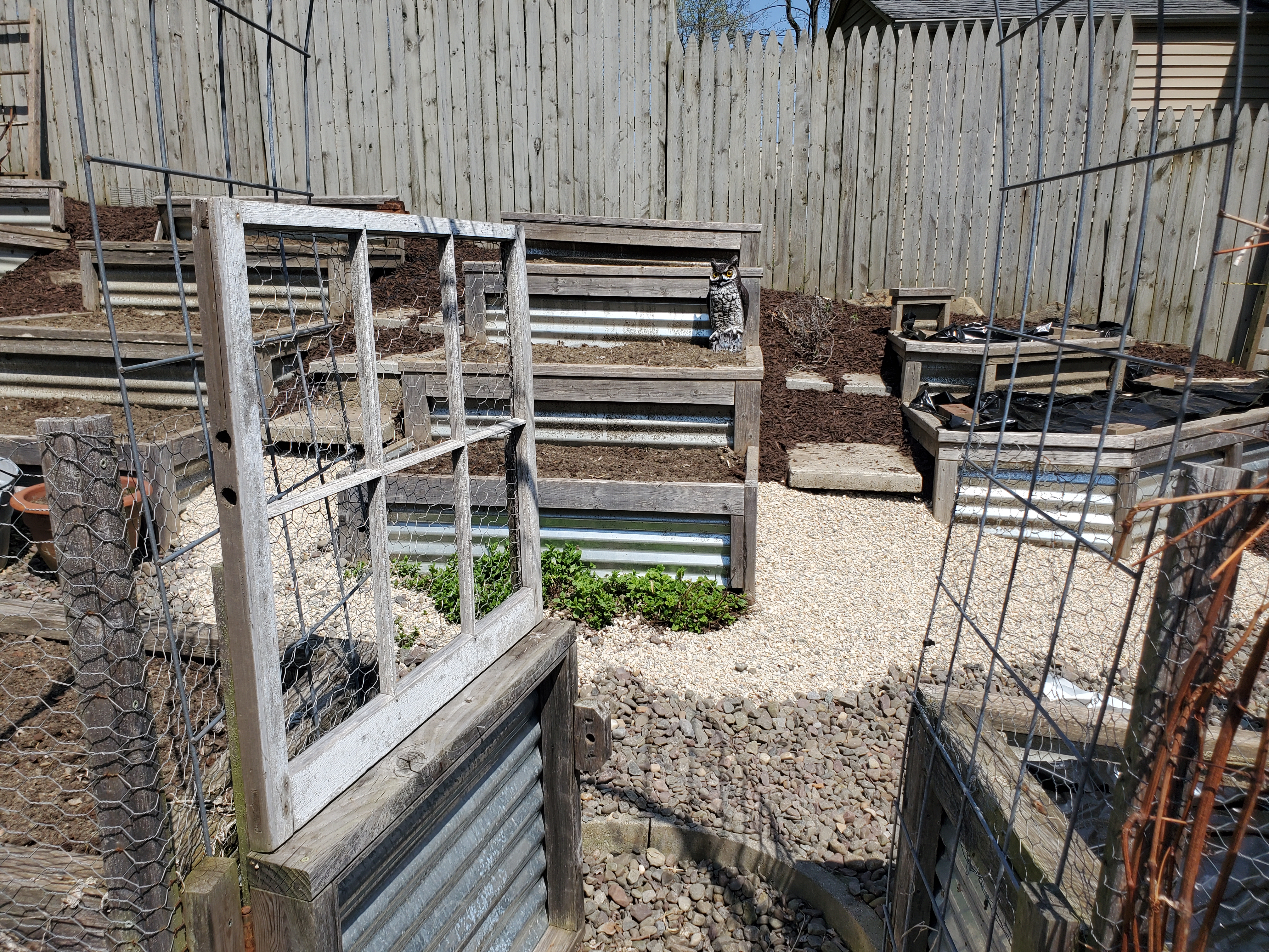 We mulched all around the garden and laid stone in other areas. Hoping for less weeds this year.